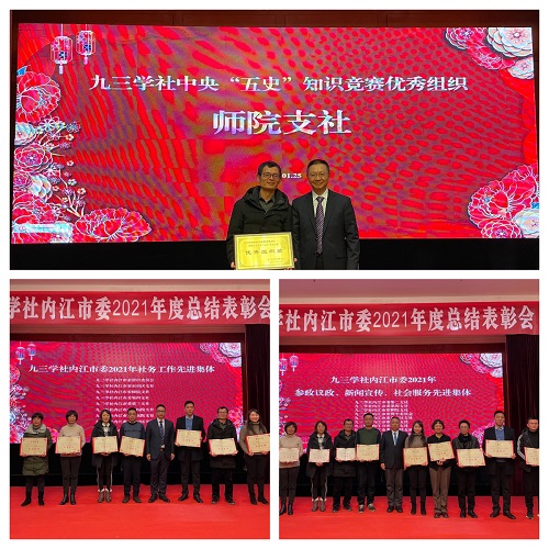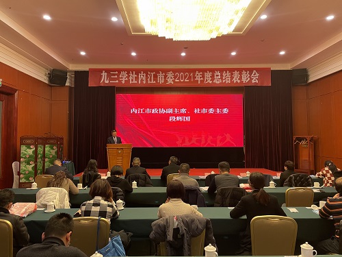 2022年1月25日,九三學(xué)社內(nèi)江市委八屆六次全委(擴(kuò)大)會(huì)暨2021年度工作總結(jié)表彰會(huì)在飄香園荷花廳召開(kāi)。市政協(xié)副主席、社市委主委段輝國(guó),副主委鄒蘭斌、韓霞,秘書(shū)長(zhǎng)黎麗琴,社市委委員、各基層組織主委、專委會(huì)主任和部分社員代表參加了會(huì)議。市委統(tǒng)戰(zhàn)部機(jī)關(guān)黨委書(shū)記張仕能、黨派科長(zhǎng)王思茜應(yīng)邀到會(huì)指導(dǎo)。會(huì)議由林海亮副主委主持。