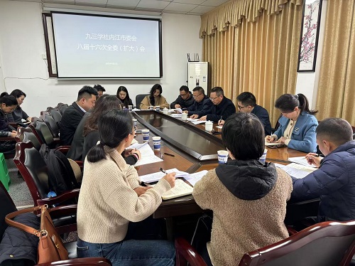 4月2日,九三學社內(nèi)江市委會召開八屆十六次全委(擴大)會。九三學社內(nèi)江市委會主委、內(nèi)江市政協(xié)副主席段輝國出席會議并講話。社市委會副主委林海亮、鄒蘭斌,秘書長黎麗琴出席會議。