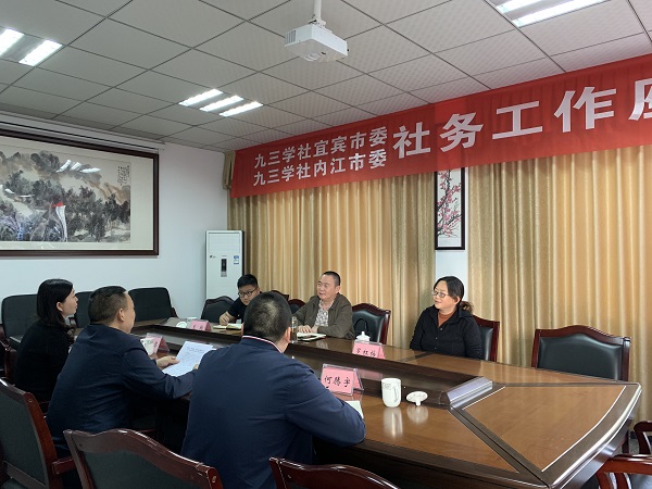 11月11日,九三學社宜賓市委專職副主委李文仲帶隊到社內江市委就社務工作進行交流座談。社宜賓市委秘書長羅紅梅及機關干部參與交流。社內江市委專職副主委鄒蘭斌、秘書長黎麗琴等機關干部陪同調研。