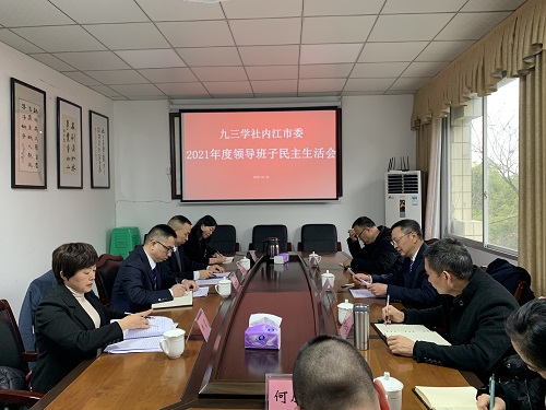 1月25日上午,九三學(xué)社內(nèi)江市委領(lǐng)導(dǎo)班子召開(kāi)2021年度民主生活會(huì),會(huì)議由段輝國(guó)主委主持,社市委全體班子成員參加。中共內(nèi)江市委統(tǒng)戰(zhàn)部機(jī)關(guān)黨委書記張仕能到會(huì)指導(dǎo)。社市委秘書長(zhǎng)、監(jiān)委會(huì)成員,中共內(nèi)江市委統(tǒng)戰(zhàn)部黨派科科長(zhǎng)列席會(huì)議。