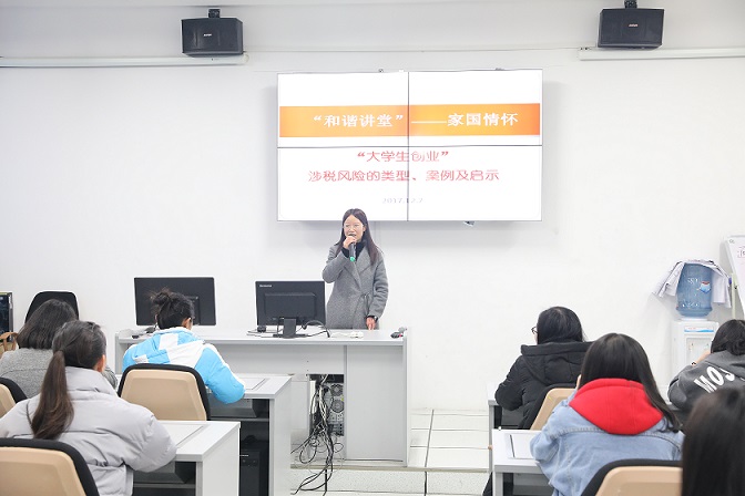 為幫助大學(xué)生順利創(chuàng)業(yè),九三學(xué)社社員熊偉攜手經(jīng)濟(jì)開發(fā)區(qū)國稅局、內(nèi)江市和諧促進(jìn)會于2017年12月7日下午在內(nèi)江師范學(xué)院舉辦了“和諧講堂——家國情懷”大學(xué)生創(chuàng)業(yè)涉稅風(fēng)險(xiǎn)的類型、案例及啟示的專題講座,熊偉以大學(xué)生為什么要創(chuàng)業(yè)為切入點(diǎn),結(jié)合案例深入淺出地講解了大學(xué)生創(chuàng)業(yè)前的涉稅風(fēng)險(xiǎn)提示、創(chuàng)業(yè)后的涉稅風(fēng)險(xiǎn)提示、創(chuàng)業(yè)過程中的其它涉稅風(fēng)險(xiǎn)提示,贏得了在場學(xué)子的陣陣掌聲。
