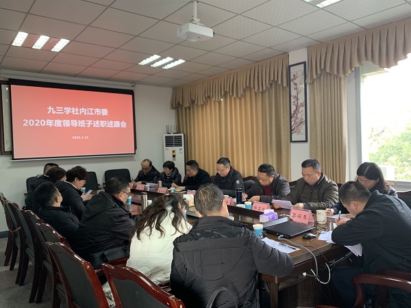 1月13日下午,九三學(xué)社內(nèi)江市委召開(kāi)2020年度領(lǐng)導(dǎo)班子述職述廉會(huì)。社市委委員、基層組織主委和社市委監(jiān)督委員會(huì)代表參加會(huì)議。社省委監(jiān)督委員會(huì)委員沈濤、中共內(nèi)江市委統(tǒng)戰(zhàn)部機(jī)關(guān)黨委書(shū)記張仕能應(yīng)邀到會(huì)指導(dǎo)。會(huì)議由社市委主委段輝國(guó)主持。