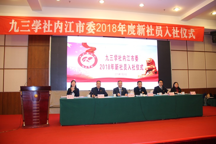 2019年1月25日下午,九三學社內(nèi)江市委舉行了2018年新社員入社儀式。社市委主委段輝國、副主委林海亮、鄒蘭斌、韓霞及秘書長黎麗琴出席了會議。市委統(tǒng)戰(zhàn)部機關黨委書記張仕能應邀出席會議。林海亮主持入社儀式。