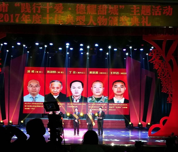 2月4日晚上,內(nèi)江市“踐行十愛·德耀甜城”主題活動2017年度十佳典型人物頒獎典禮在沱江劇院隆重舉行,九三學(xué)社社員丁兆榮獲內(nèi)江市“踐行十愛.德耀甜城”2017年度十佳典型人物“愛內(nèi)江”稱號。
