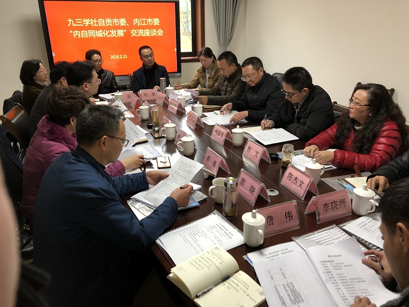 2月15日下午,九三學(xué)社內(nèi)江市委與九三學(xué)社自貢市委在自貢市委會(huì)議室召開“內(nèi)自同城化發(fā)展”交流座談會(huì)。內(nèi)江市政協(xié)副主席、九三學(xué)社內(nèi)江市委主委段輝國,自貢市政府副市長、九三學(xué)社自貢市委主委陳張銘出席會(huì)議。兩市九三學(xué)社市委副主委、秘書長及骨干社員共20余人參加座談會(huì)。