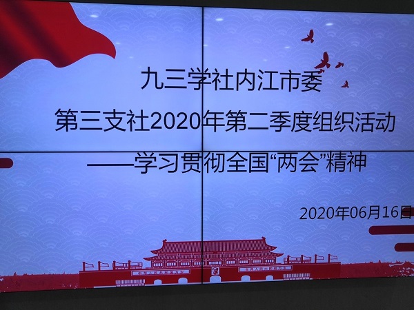 2020年6月16日,九三學社內(nèi)江市委第三支社在內(nèi)江市興鑫稅務師事務所會議室舉行了2020年第二季度組織生活。組織活動由支社副主委鐘廣玲主持。支社副主委熊偉和部分社員參加了本次組織生活。社市委副主委、監(jiān)委會主任林海亮,秘書長黎麗琴受邀參加組織生活。