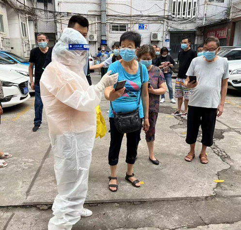 社員張國(guó)民第一時(shí)間下沉所在社區(qū)的高風(fēng)險(xiǎn)區(qū)域,參與轉(zhuǎn)運(yùn)江城花園內(nèi)紅碼人員、陽(yáng)性無(wú)癥狀感染者和密接人員。協(xié)助開(kāi)展核酸檢測(cè)、樓道消殺、生活物資搬運(yùn)等工作。