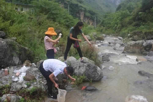 圖為陶敏(右一)在涼山州金陽縣開展山區(qū)河流水生生物調(diào)查