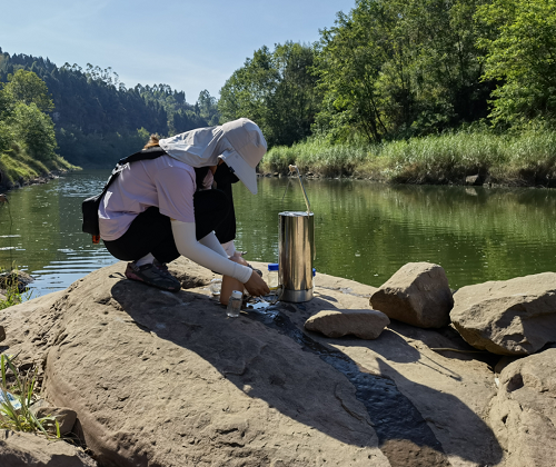 圖為陶敏在沱江開展流域水質(zhì)與水生生物調(diào)查