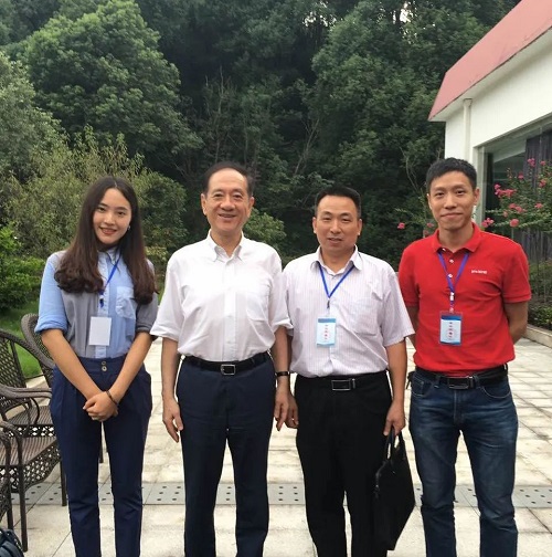 圖為陶敏(左一)在宜賓參加長江上游生態(tài)保護(hù)與流域城市綠色發(fā)展調(diào)研座談會時與韓啟德院士(左二)等領(lǐng)導(dǎo)嘉賓合影