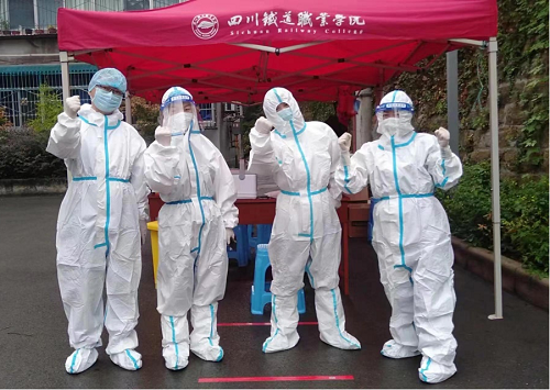 社員鐘曉明在四川鐵道職業(yè)學(xué)院內(nèi)江校區(qū)管委會核酸檢測點化身志愿者,為轄區(qū)內(nèi)居民進(jìn)行核酸檢測。
