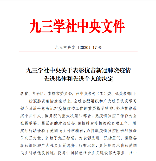 為表彰先進(jìn)、弘揚(yáng)正氣,激勵(lì)各級(jí)社組織和廣大社員見(jiàn)賢思齊、行有示范,更好地傳承九三學(xué)社“愛(ài)國(guó)民主科學(xué)”優(yōu)良傳統(tǒng),投身中國(guó)特色社會(huì)主義建設(shè)偉大事業(yè),社中央決定表彰全國(guó)抗擊新冠肺炎疫情先進(jìn)集體和先進(jìn)個(gè)人。九三學(xué)社內(nèi)江市委二醫(yī)院支社主委、市二醫(yī)院影像中心主任蔡春仙榮獲“九三學(xué)社抗擊新冠肺炎疫情先進(jìn)個(gè)人”榮譽(yù)稱號(hào)。