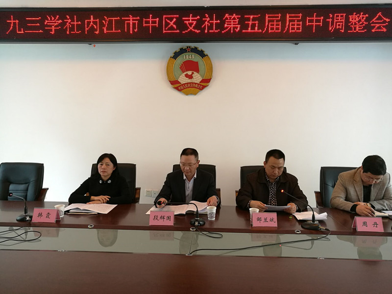 4月21日,九三學(xué)社內(nèi)江市中區(qū)支社召開屆中調(diào)整選舉會議。內(nèi)江市政協(xié)副主席、九三學(xué)社內(nèi)江市委主委段輝國,中共市中區(qū)委統(tǒng)戰(zhàn)部常務(wù)副部長、區(qū)工商聯(lián)黨組書記周丹出席會議。會議由九三學(xué)社內(nèi)江市委副主委兼秘書長鄒蘭斌主持。