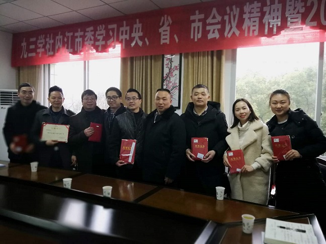 會議學習了《九三學社四川省委關于貫徹社中央十一大精神的通知》,通報了九三學社內(nèi)江市委2017年工作總結(jié)及2018年工作安排,學習了內(nèi)江市中區(qū)委十四屆八次全會精神,表彰了2017年省、市優(yōu)秀社員和優(yōu)秀社務工作者。