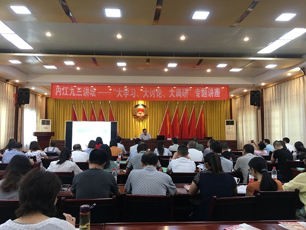 6月9日,九三學社內(nèi)江市委舉辦內(nèi)江九三講壇——“大學習、大討論、大調(diào)研”專題講座。全市近100名社員聽取了專題講座。專題講座由內(nèi)江市政協(xié)副主席、九三學社內(nèi)江市委主委段輝國主持。