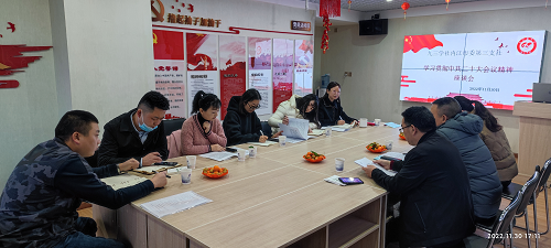 11月30日,九三學(xué)社內(nèi)江市第三支社學(xué)習(xí)傳達中共二十大精神,社市委專職副主委鄒蘭斌、秘書長黎麗琴參加會議,活動由三支社副主委熊偉同志主持。